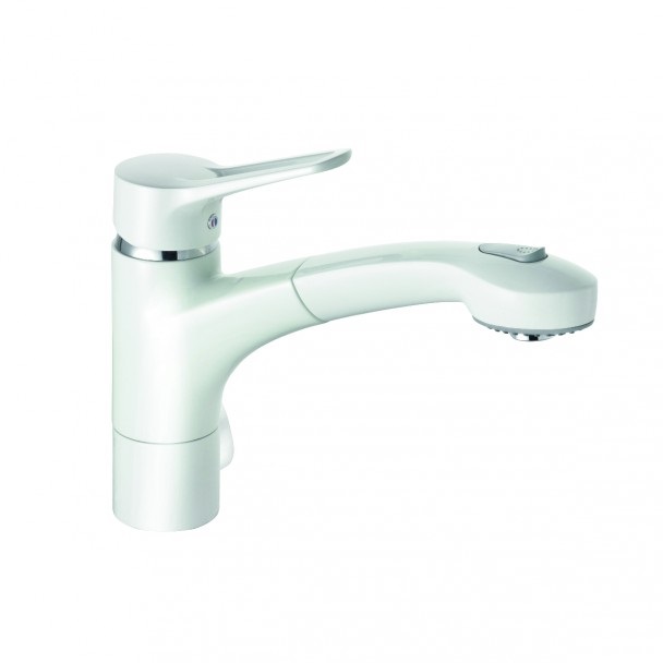 Змішувач для кухні Kludi MX, висувний вилив, дод.кран білий/хром