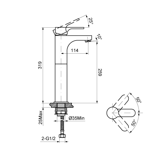- - гнучка підводка довжиною 30 см із гайкою ½ дюйма
