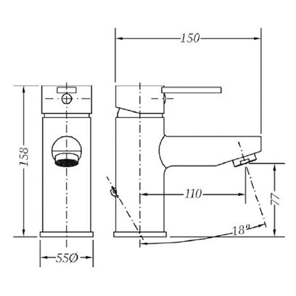- - вилив: висота 77 мм, загальна висота 158 мм