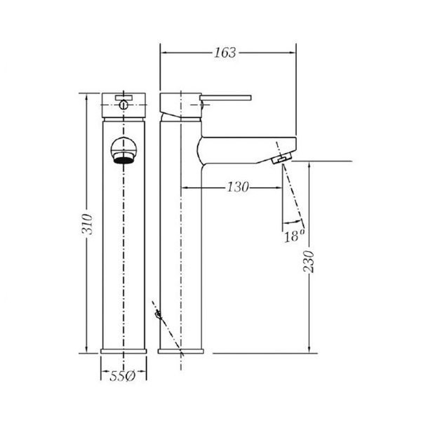 - - вилив: висота 230 мм, загальна висота 310 мм