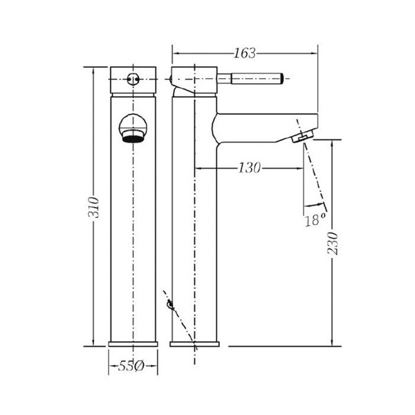 - - вилив: висота 230 мм, загальна висота 310 мм