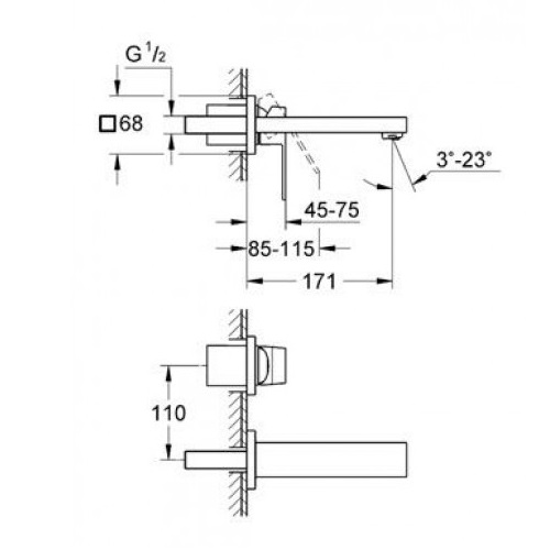 Змішувач для раковини Grohe Eurocube, комплект верхньої монтажної частини, необхідна комплектація вбудованим блоком (арт. 23200000, 32635000).