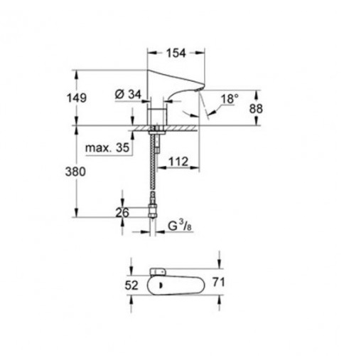 Безконтактний міситель-термостат для раковини Grohe Europlus E, з адаптером 230V, 50 Hz, 3,2VA.