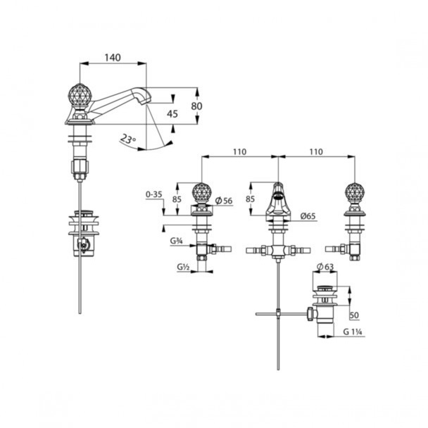 - керамічні кран-букси 180°, кришталеві рукоятки "Made with Swarovski® Elements"