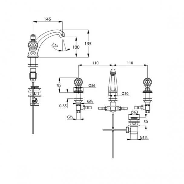 - керамічні кран-букси 180°, кришталеві рукоятки "Made with Swarovski® Elements"