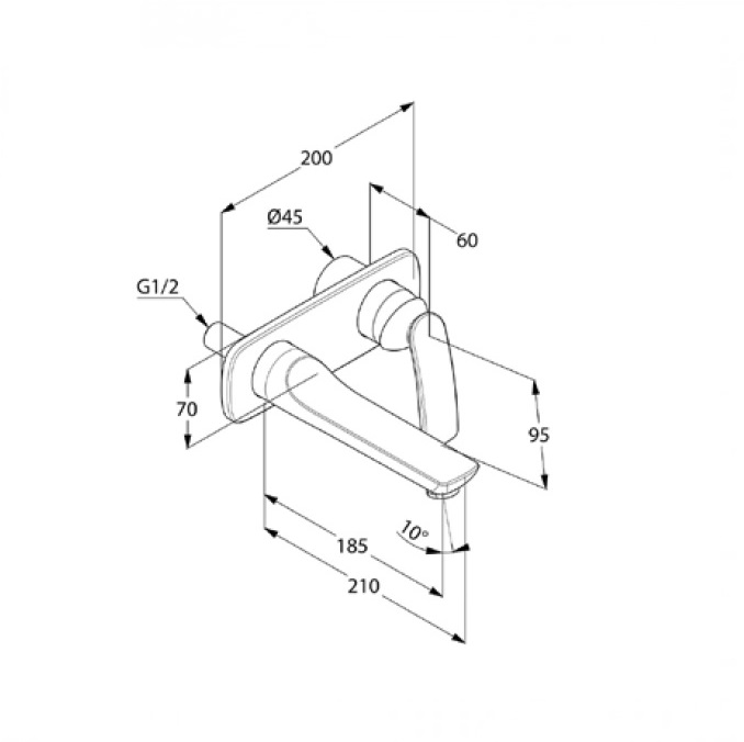 - настінний монтаж, винос виливу 185 мм, литий важіль