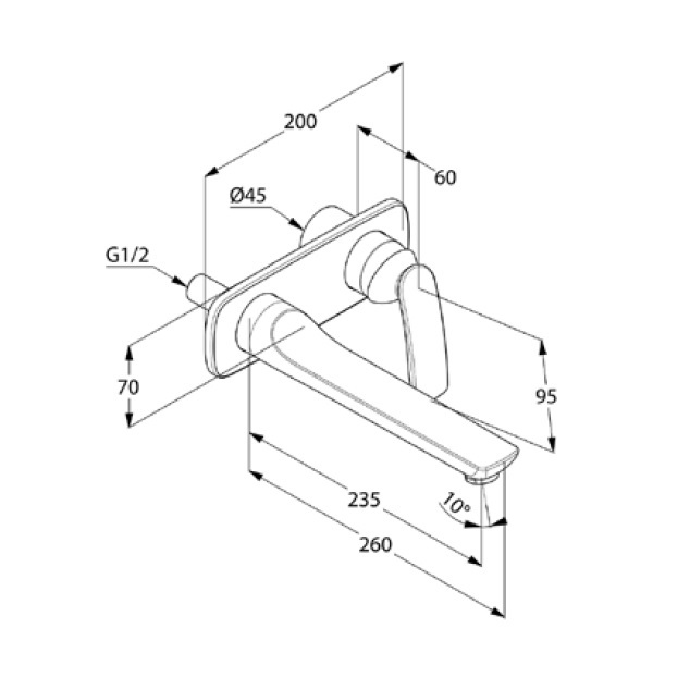 - настінний монтаж, винос виливу 235 мм, литий важіль