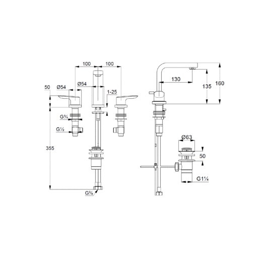 - загальна висота 160 мм, литий вилив: висота 135 мм, керамічні вентилі 90°