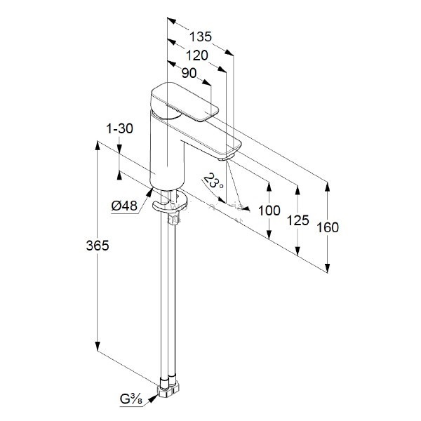 - витрата води 7 л/хв., аератор M 24 x 1, керамічний картридж, гнучке підведення G 3/8