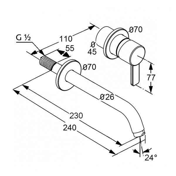 Змішувач для раковини Kludi Zenta (тільки зовнішня монтажна частина).