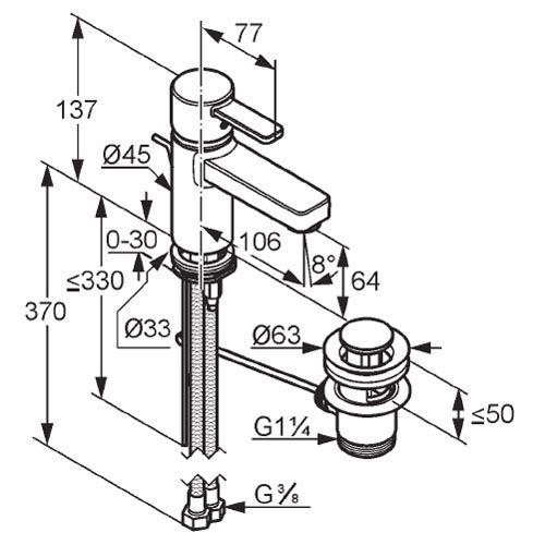 - загальна висота 137 мм, литий вилив висота 64 мм