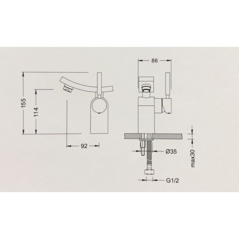 - загальна висота 155 мм, литий вилив: висота 114 мм, довжина 92 мм