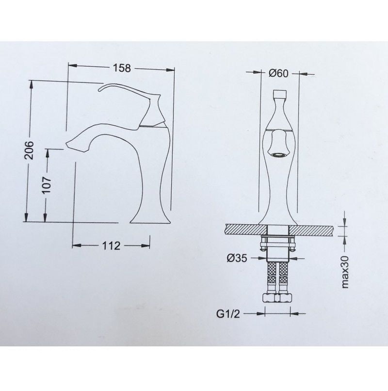 - загальна висота 205 мм, литий вилив: висота 107 мм, довжина 112 мм