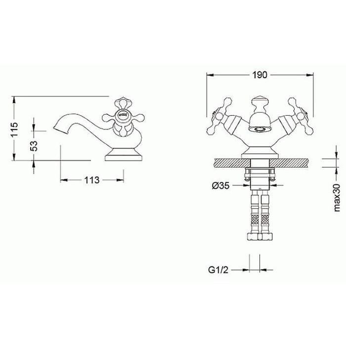 - загальна висота 115 мм, литий вилив: висота 53 мм, довжина 113 мм