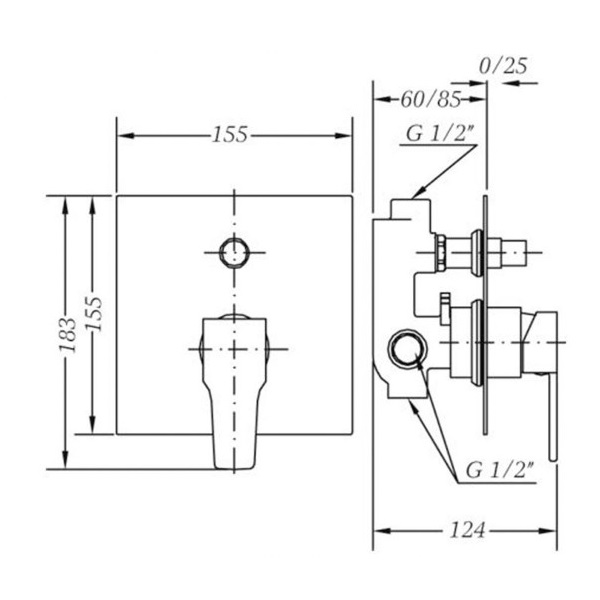 Вбудований змішувач для ванни та душу Genebre Kenjo 63116264566,прихована частина змішувача в комплекті.