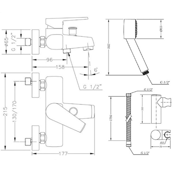 Змішувач для ванни і душу Genebre Klip 64100164566, з душовим гарнітуром.