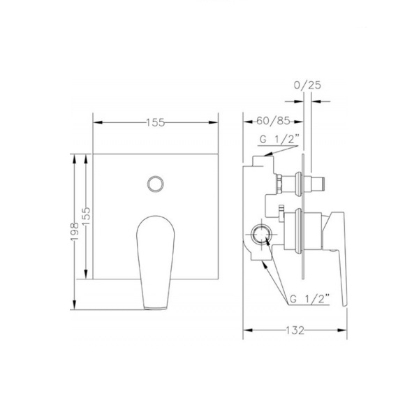 Вбудований змішувач для ванни та душу Genebre Klip 6411614566,прихована частина змішувача в комплекті.