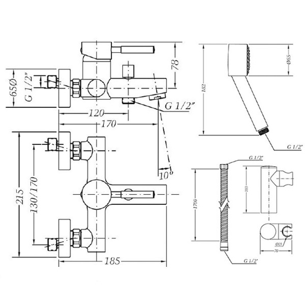 Змішувач для ванни та душу Genebre Tau 65100184566