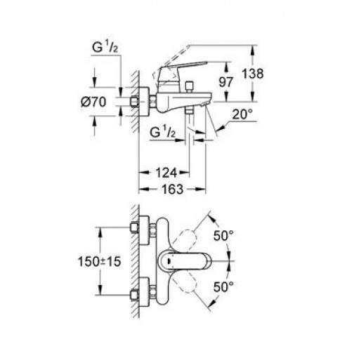 Змішувач для ванни та душу Grohe Eurosmart Cosmo.