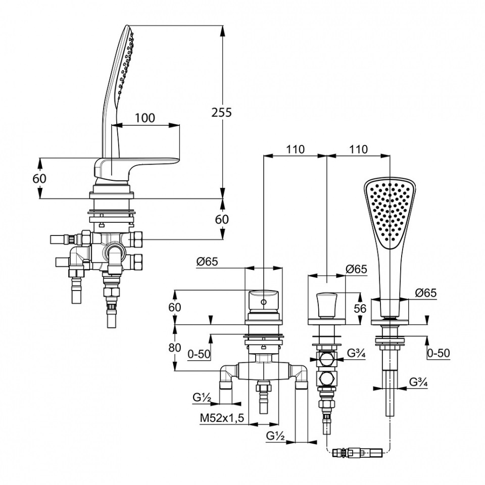 - монтаж на 3 отвори на борт ванни, автоматичне перемикання душ/ванна