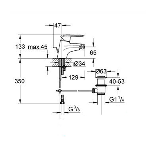 - - вилив висотою 65 мм, загальна висота 133 мм