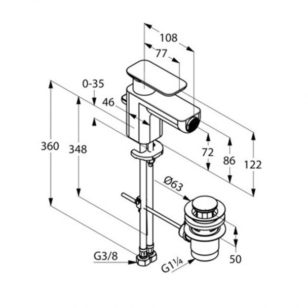 - висота змішувача 122 мм, вилив: висота 72 мм, довжина 108 мм