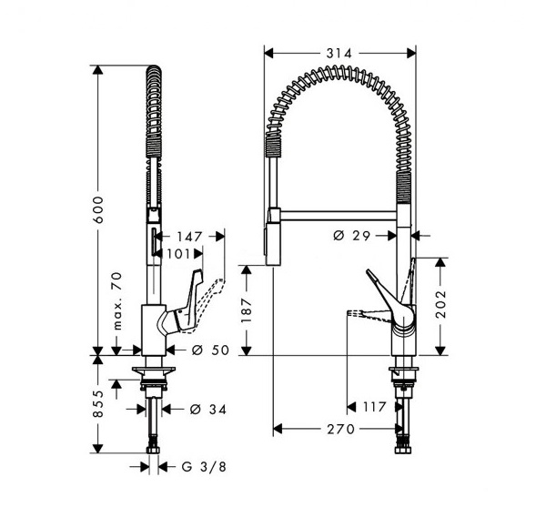 - поворотний вилив на пружині,звичайний/душовий струмінь