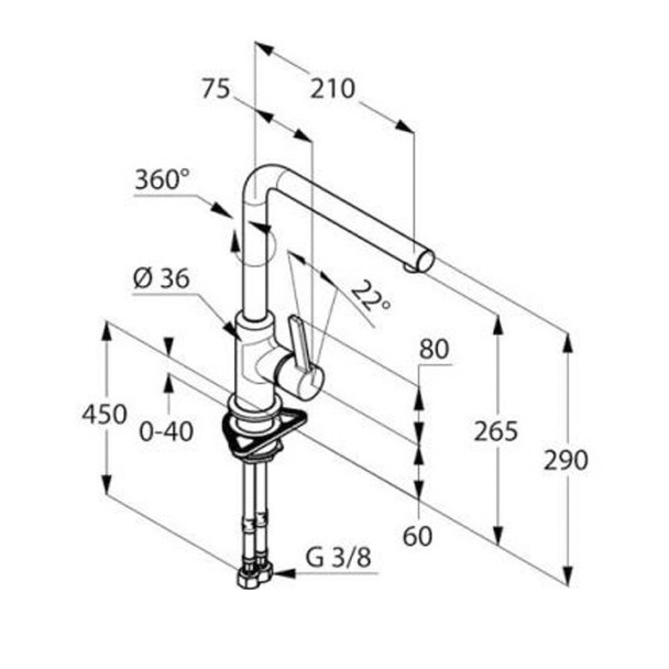 - гнучке підведення G 3/8, кріплення на стрижні