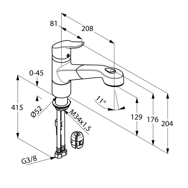 - висота змішувача 204 мм, вилив: довжина 204 мм, висота 129 мм
