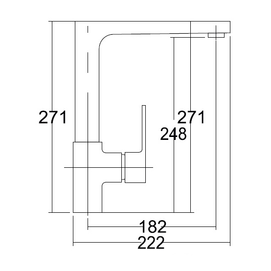 - - загальна висота змішувача 271 мм,вилив:висота 248 мм, довжина 182 мм
