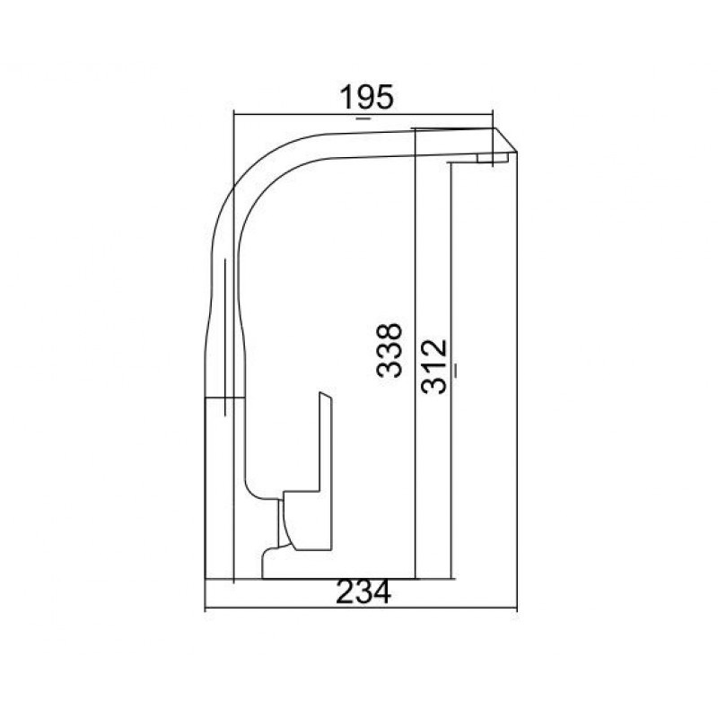 - - загальна висота змішувача 338 мм, поворотний вилив: довжина 195 мм, висота 312 мм
