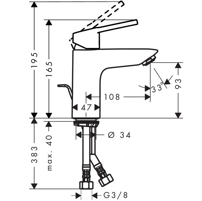- загальнависота 165/195 мм, висота виливу 93 мм, довжина виливу 108 мм