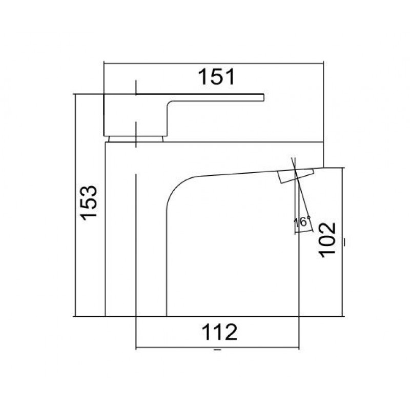 - - загальна висота змішувача 153 мм,вилив:висота 102 мм, довжина 112 мм
