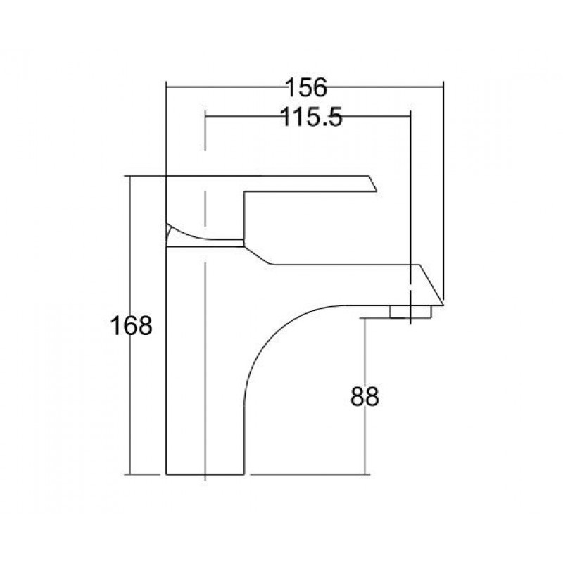 - - загальна висота змішувача 168 мм, вилив: довжина 115.5 мм, висота 88 мм