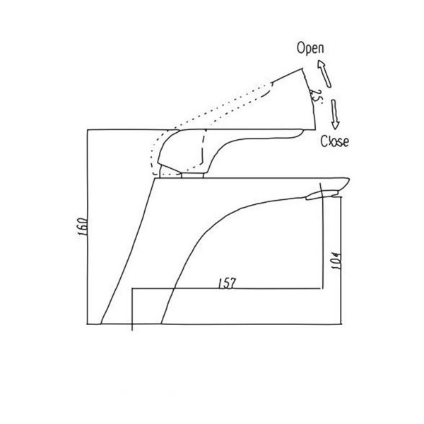 - -загальна висота змішувача 160 мм, вилив:висота 104 мм, довжина 157 мм