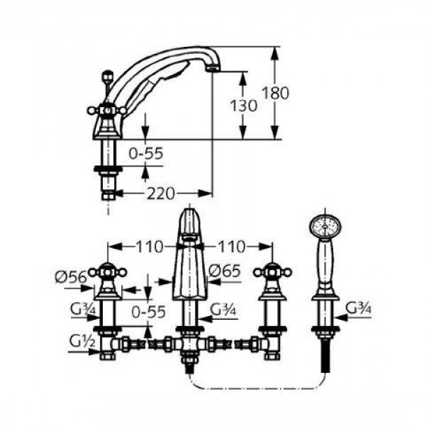 - автоматичне перемикання душ/ванна, душова лійка, що витягується