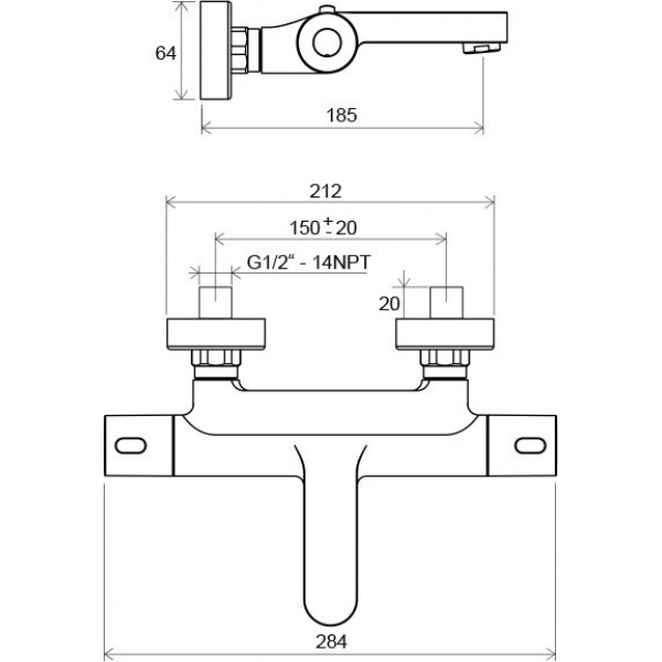- загальна довжина 284 мм, висота 150 мм, винос виливу 185 мм