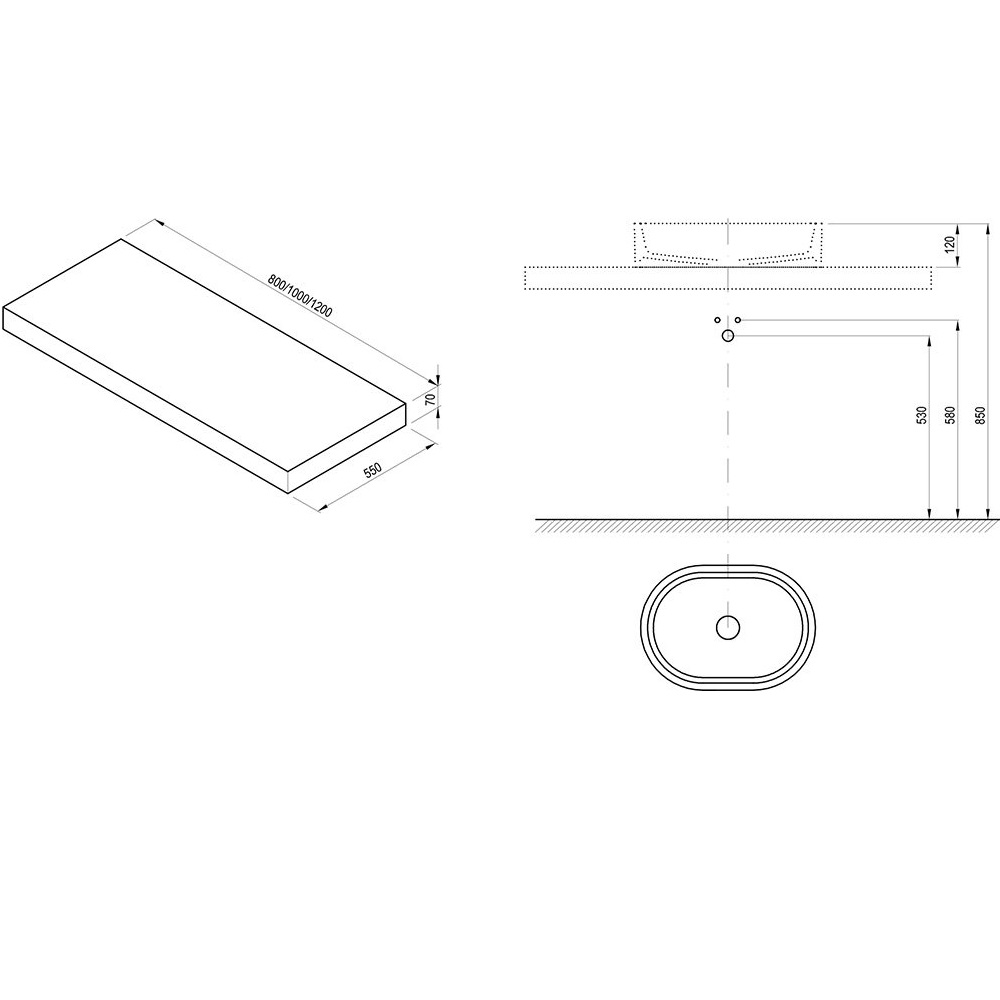 - матеріал: імпрегнована плита MFPB і шпон, колірне виконання стільниці: білий глянець, дуб, горіх