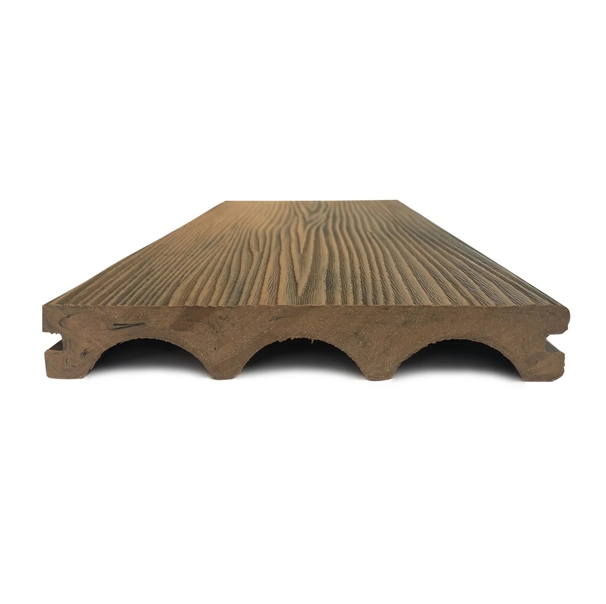 Терасна дошка Renwood Massive 3D - зразок якісного британського продукту.Цю тераснудошку виробляють на території Великої Британії на найсучаснішому обладнанні та з використанням тільки якісних натуральних і полімерних компонентів. Завдяки цьому, дошка отримує натуральний, гарний зовнішній вигляд, а також хороший запас міцності та стійкості до всіх можливих зовнішніх впливів. Ідеально підходить для приватних і комерційних об'єктів з високою прохідністю, а також на об'єктах біля води, крок лаг - 30 см, відстань між дошками - 4 мм.