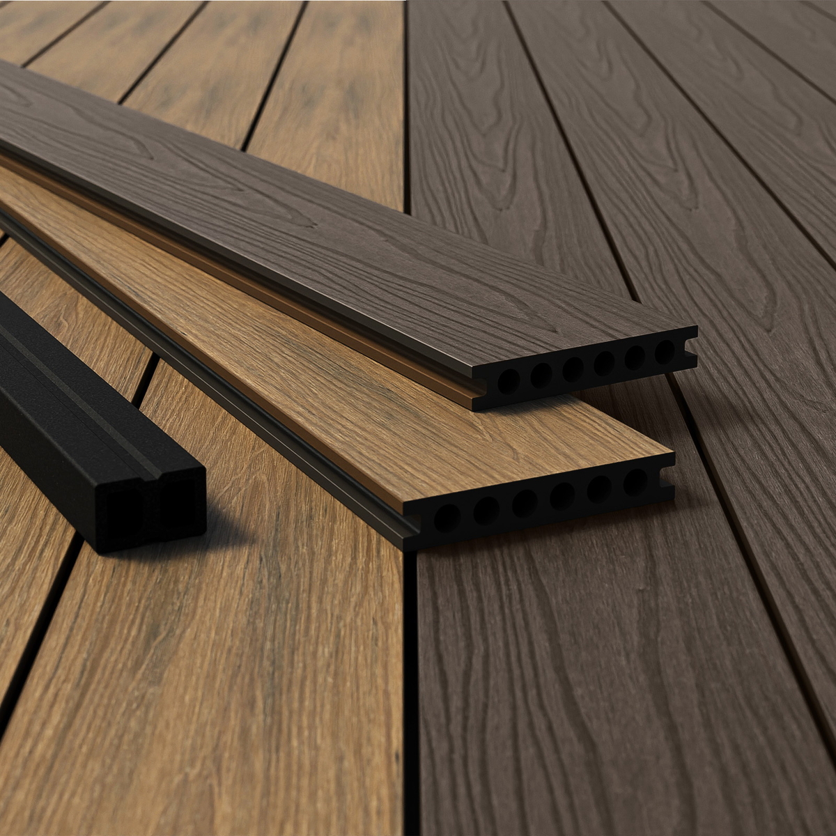Є також ціла гама оздоблювальних елементів для тераси: четвертинки, маскувальні та кутові планки, заглушки.