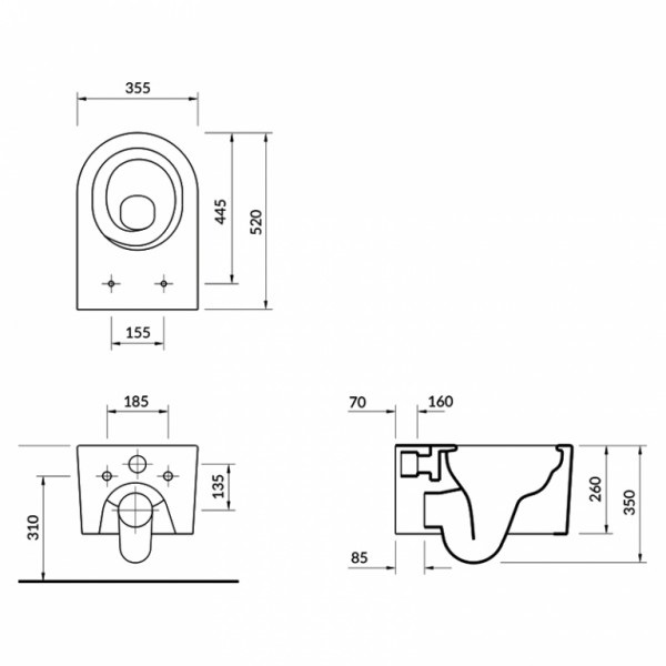 - злив води в каналізацію - горизонтальний, зливна лійка унітазу - ззаду