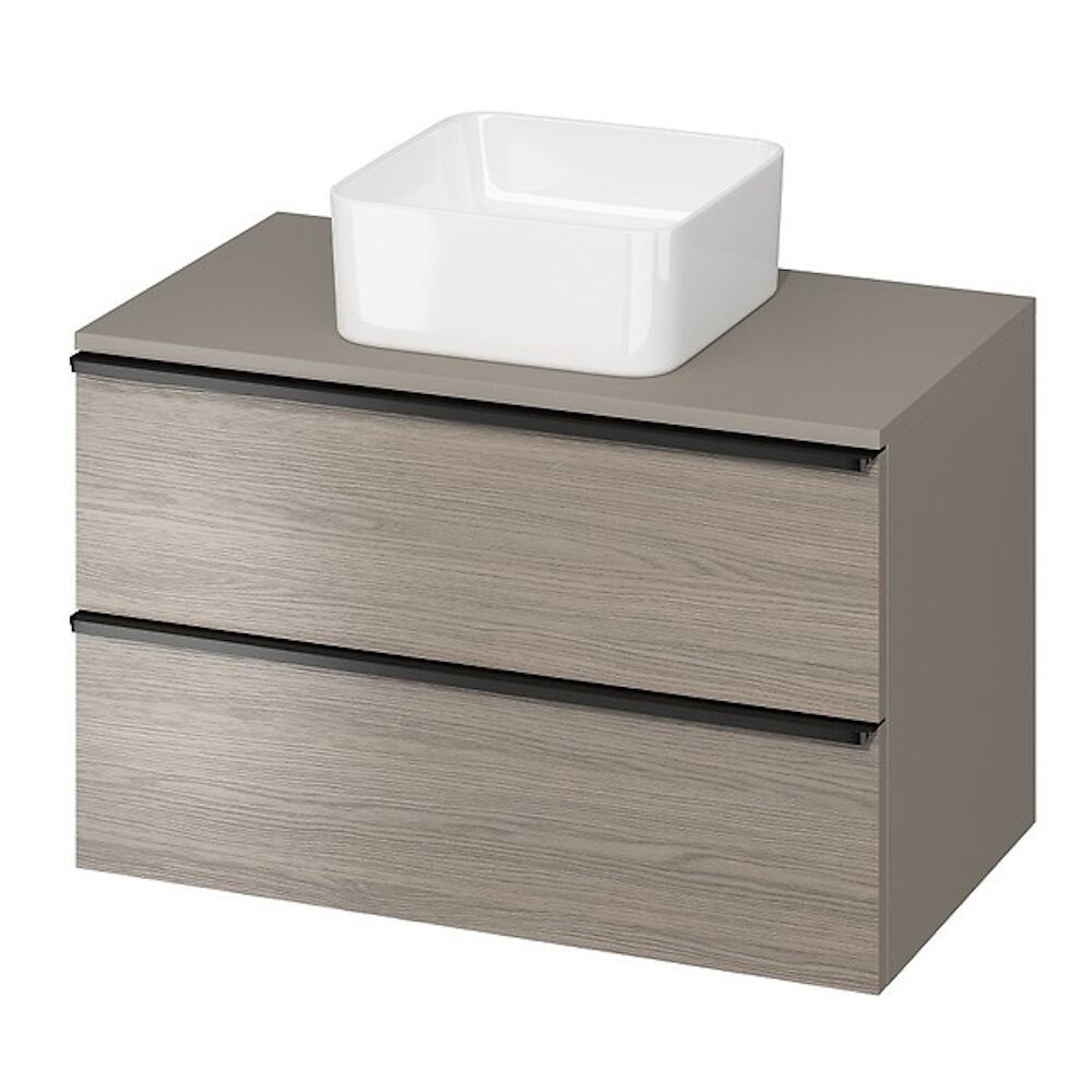 Тумба під умивальник Cersanit Virgo 80, зі стільницею сірий, ручка чорна