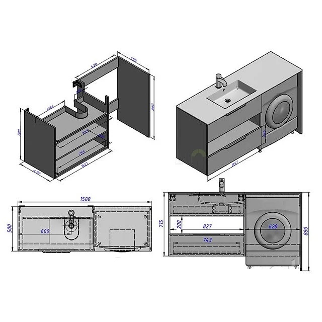 - 2 висувні шухляди з доводчиками, місце для пральної машини зліва/справа, під час купівлі уточнюйте