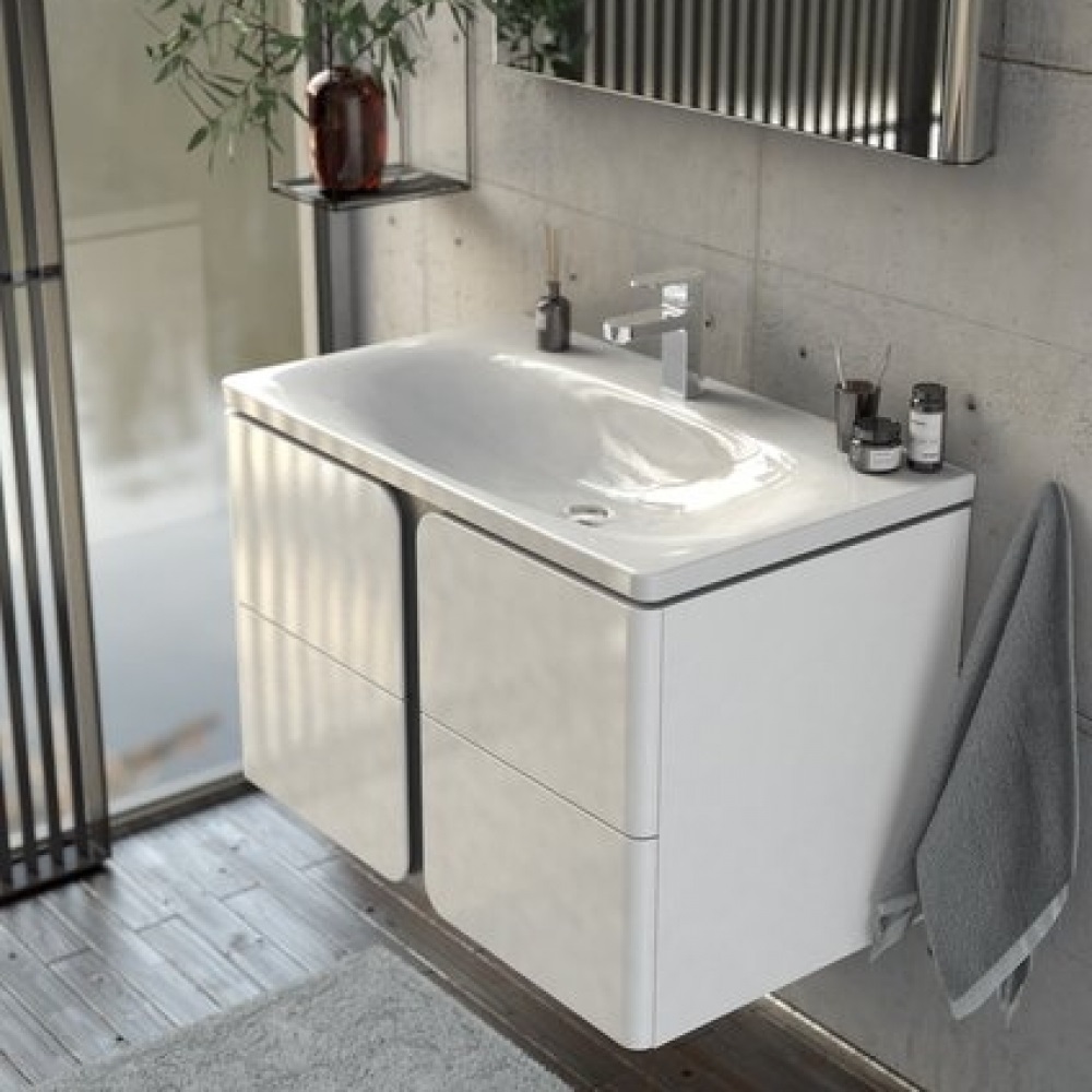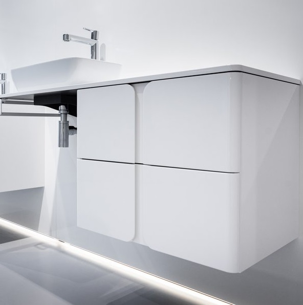 Настінну тумбу можна комбінувати з вбудованим умивальником Balance 800, доповненим сифоном і фіксованим зливом.Іншим рішенням є комбінація стільниці Balance 800 та умивальника.