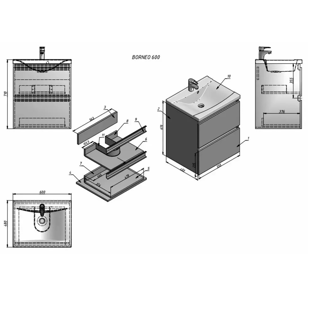 - ШхГхВ: 59.5 х 47.6 х 70.5 см - розмір тумби з умивальником