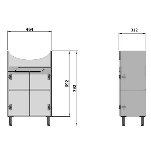 - розпашні дверцята з механізмом плавного закривання, знімна полиця, 4 регульовані ніжки