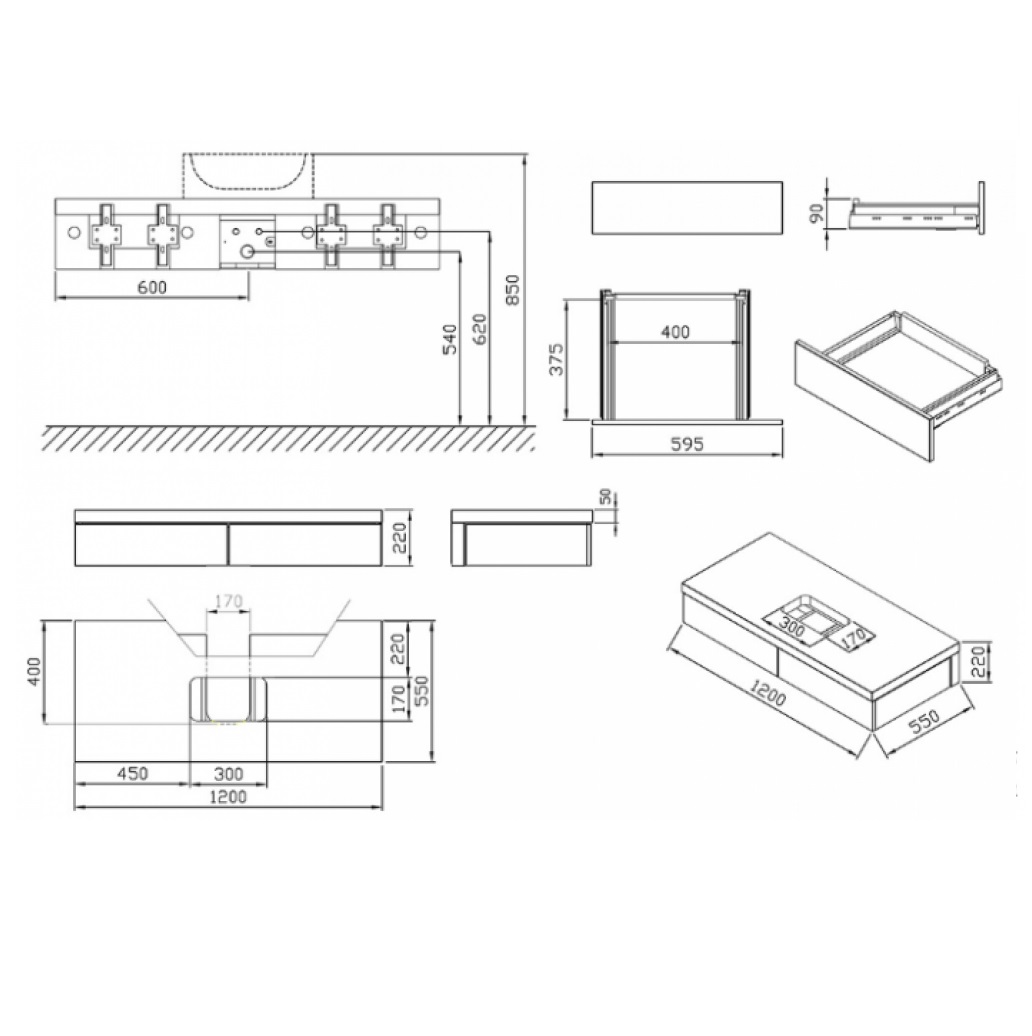 - оснащена двома висувними шухлядами