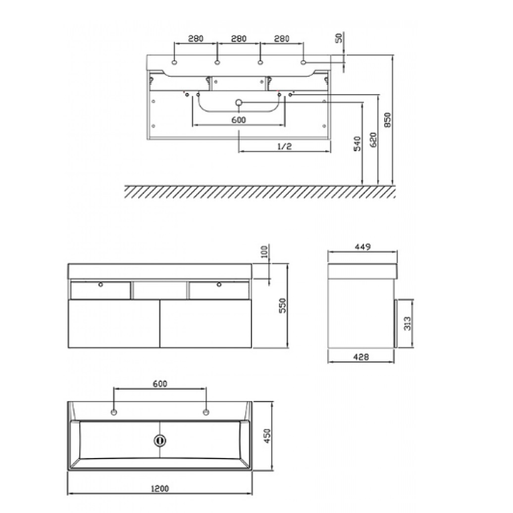 - монтується на стіну,оснащена трьома полицями і шухлядою, розділеною всередині на дві частини