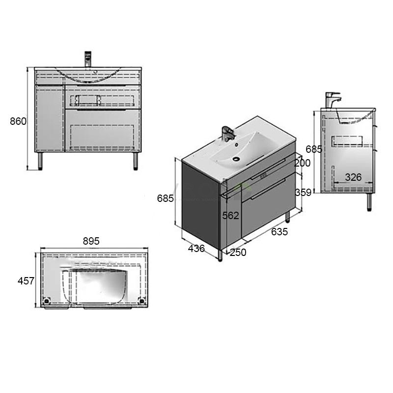 - доступні кольори шафки: МДФ - білий, сірий, Шпон - дуб