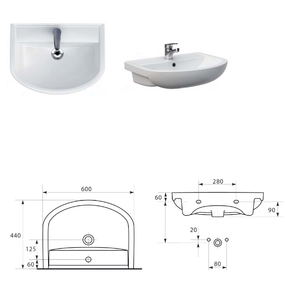 - умивальник Cersanit Arteco 60 (Україна), 600 х 440 мм, з переливом